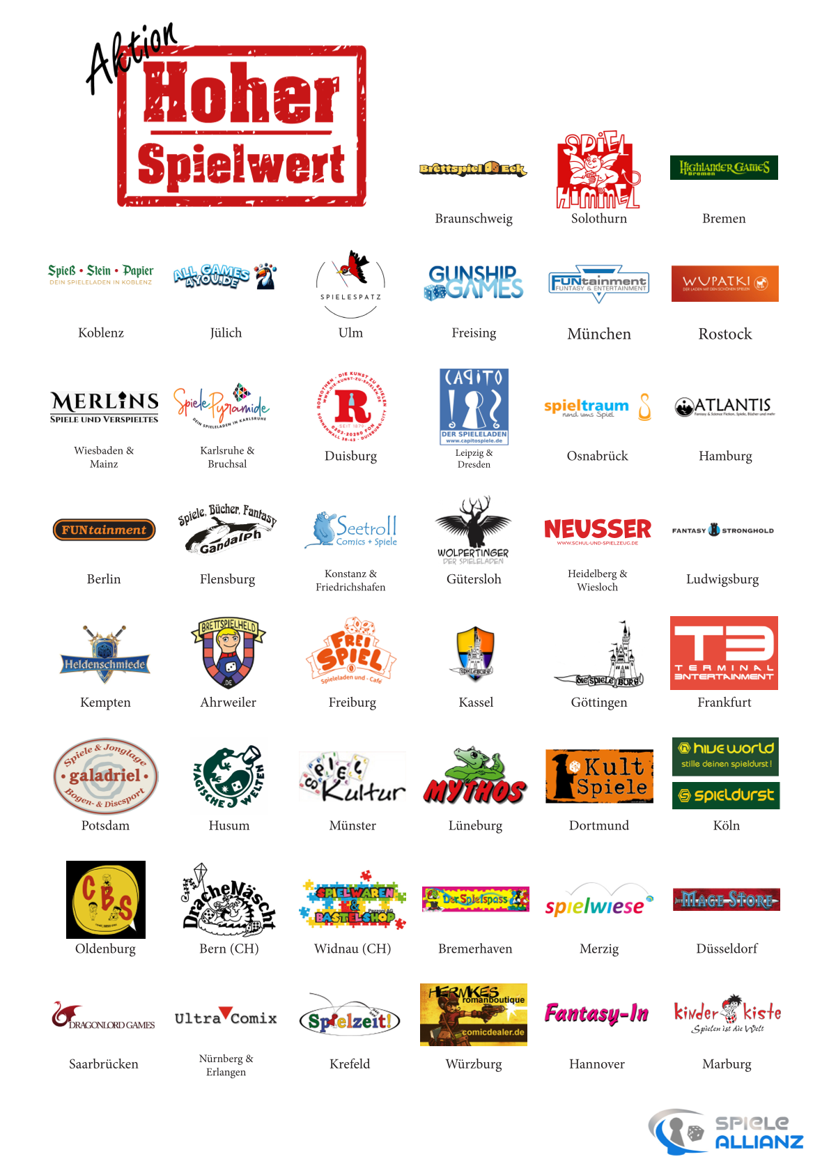 Die Aktion "Hoher Spielwert" wird von diesen erfahrenen Spieleläden empfohlen